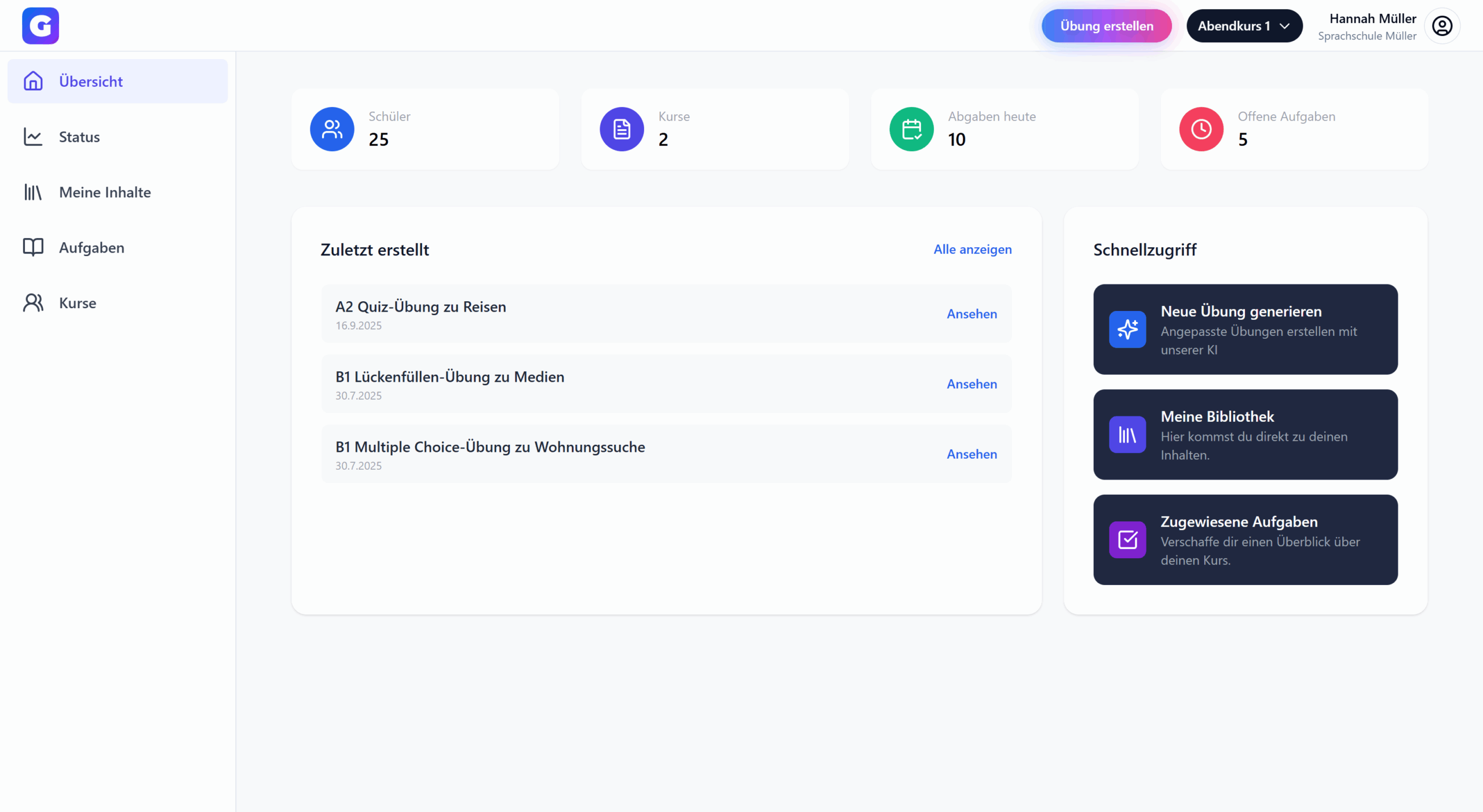 - Digitalisiere deine Sprachschule: Setze auf eine moderne, KI-gestützte Lösung, die dir neue Möglichkeiten eröffnet.